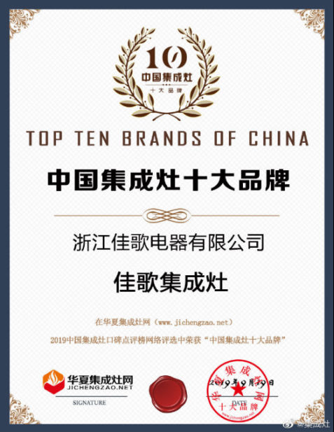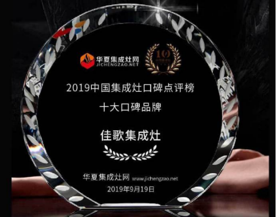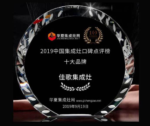 在本次“2019中國(guó)集成灶口碑點(diǎn)評(píng)榜評(píng)選中,佳歌集成灶一舉斬獲中國(guó)集成灶十大口碑品牌、中國(guó)集成灶十大品牌兩項(xiàng)殊榮!