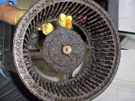 剩余較小比例的微油煙分子被卷入高速旋轉(zhuǎn)的風(fēng)輪,由于油脂跟煙的重量是不同的,在離心力的作用下微油分子被甩到內(nèi)壁,導(dǎo)入油孔。凈化后的氣體則順著排風(fēng)管道被排出室外。