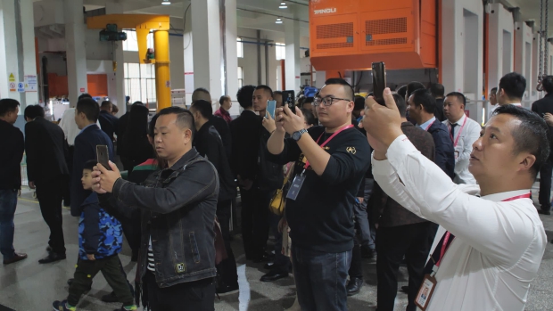 客戶紛紛拍手叫絕,忍不住拿出手機拍下佳歌4.0智能生產(chǎn)車間。