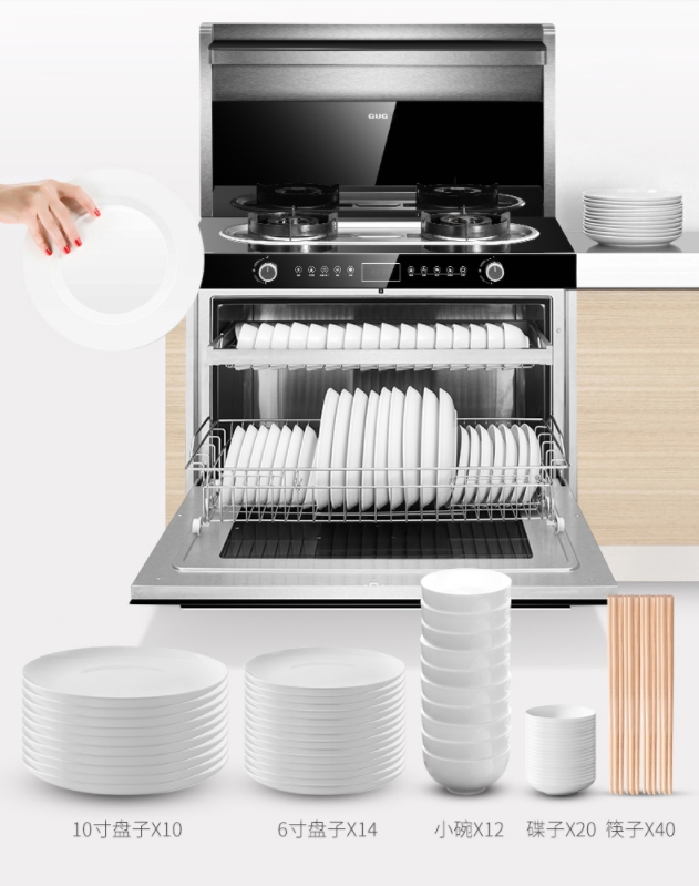 佳歌集成灶行業(yè)首創(chuàng)一門式消毒柜,佳歌集成灶的100L超大容量消毒柜,整個(gè)內(nèi)腔都可放置碗盤??梢哉畔?/span>10個(gè)10寸盤子+14個(gè)6寸盤子+12個(gè)小碗+20個(gè)碟子+40只筷子。