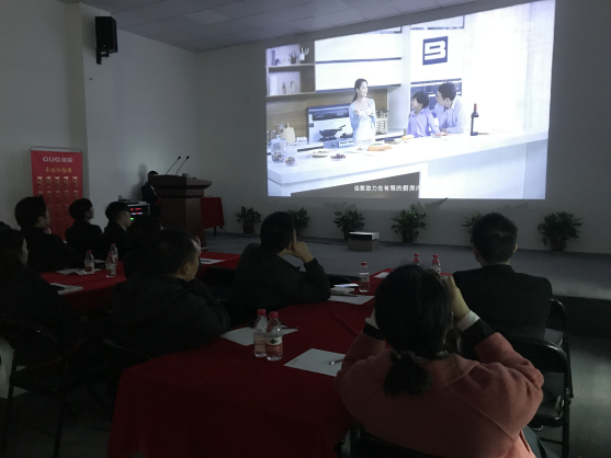 會議開始,到場客戶先觀看了佳歌新出爐的企業(yè)宣傳片,接著佳歌集成灶營銷總經理黃忠海致辭,對到場的客戶到來表示由衷的感謝。就廚電市場與集成灶朝陽產業(yè)進行市場分析及前景預測,也向在座來賓說明了廚電市場及集成灶行業(yè)發(fā)展趨勢及其潛在利潤空間。