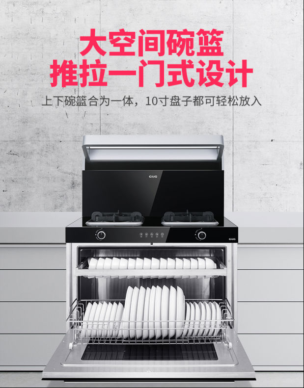 佳歌集成灶W1的100L超大容量一門式消毒柜,突破了雙門式消毒柜的高度限制,讓上下碗籃合為一體,整個內(nèi)腔都可放置碗盤,毫不擁擠!