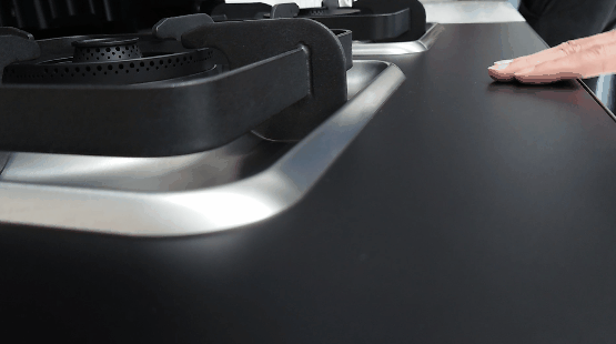 磨砂玻璃面板的燃?xì)庠罹邆鋬?yōu)秀的疏油抗指紋特性,在廚房重油污環(huán)境下比普通黑晶面板更容易清潔打理。